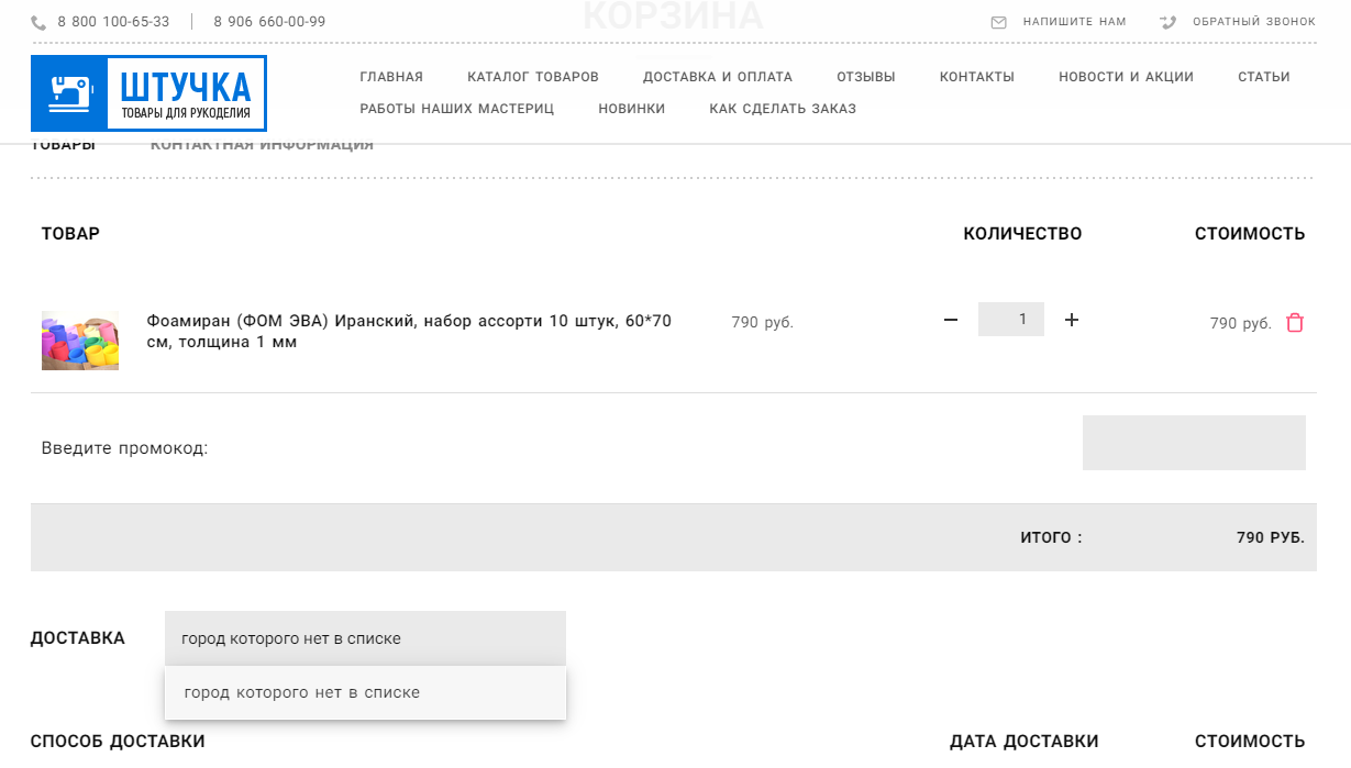 Если вашего города нет в списке, укажите ближайший крупный город или полностью напишите название вашего населенного пункта, затем нажмите кнопку Enter на клавиатуре. В любом случае, при обработке заказа мы в первую очередь ориентируемся на информацию, которую вы укажете в следующем окне при заполнении контактных данных — пример.