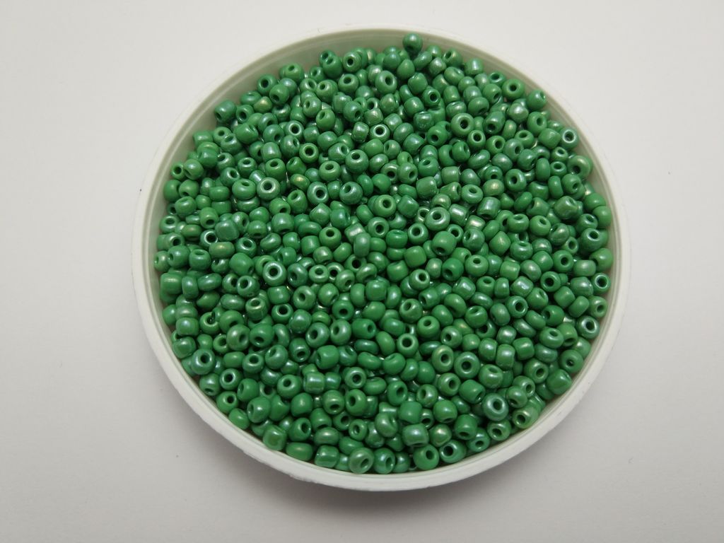 Производитель: Китай, цвет №127 зеленый перламутровый непрозрачный, цена за 50 грамм (возможно отклонение на 1-2 гр), размер №8/0 - примерно 3,0 мм.