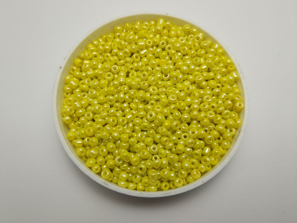 Производитель: Китай, цвет №122 желтый непрозрачный блестящий, цена за 50 грамм (возможно отклонение на 1-2 гр), размер №8/0 - примерно 3,0 мм.