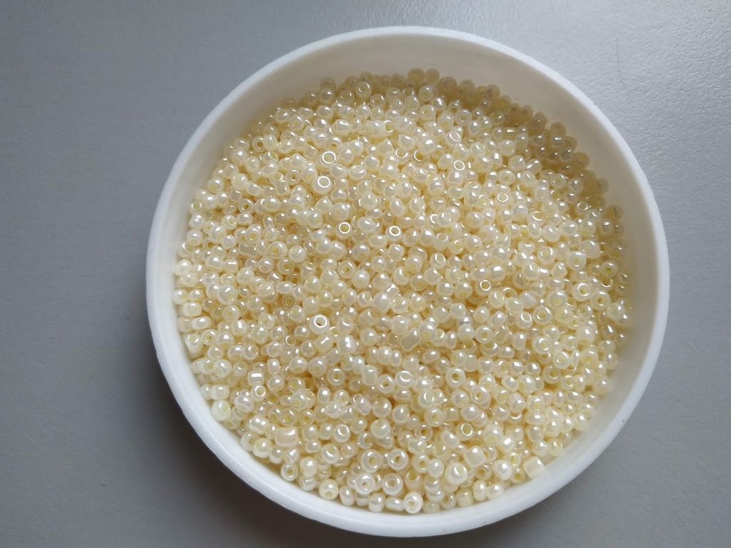 Производитель: Китай, цвет №142 кремовый, глянцевый, цена за 50 грамм (возможно отклонение на 1-2 гр), размер №12/0 - примерно 1,9 мм.