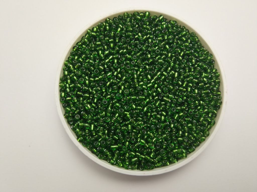 Производитель: Китай, цвет №27 зеленый непрозрачный с внутренним посеребрением, цена за 50 грамм (возможно отклонение на 1-2 гр), размер №12/0 - примерно 1,9 мм.
