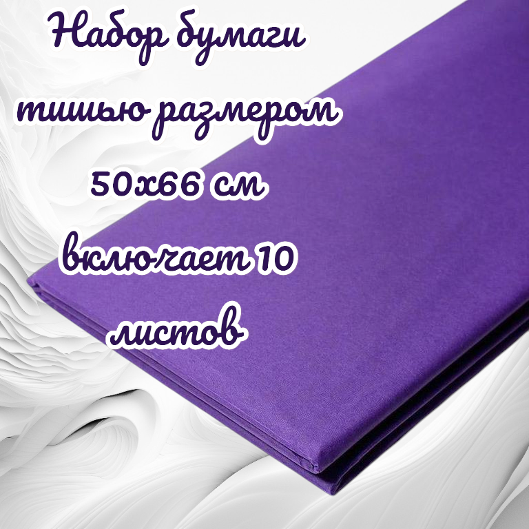 Набор бумаги тишью размером 50х66 см включает 10 листов.