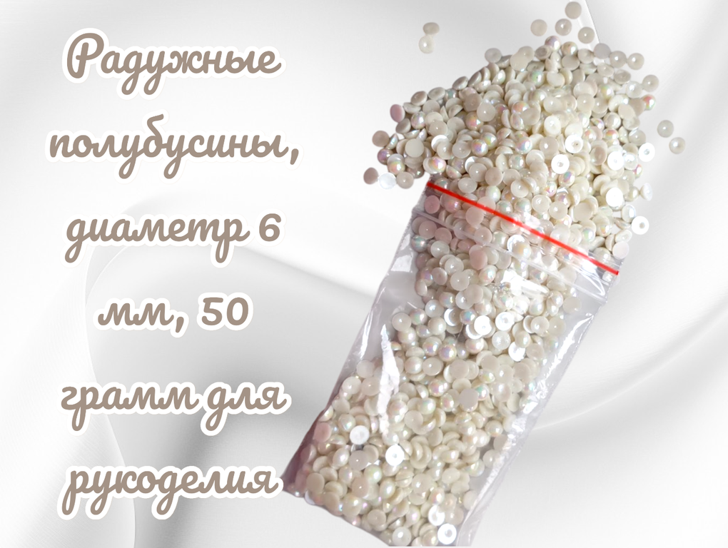 Радужные полубусины, диаметр 6 мм, 50 грамм для рукоделия, декора.