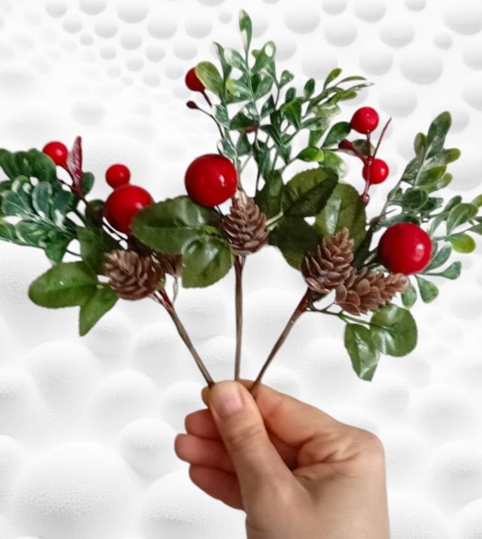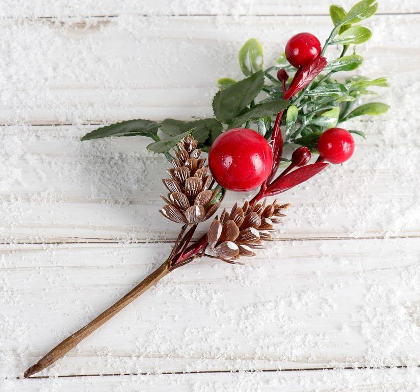 Такую веточку можно сделать самой, но зачем, если уже есть готовая красивая веточка со снегом и шишкой.