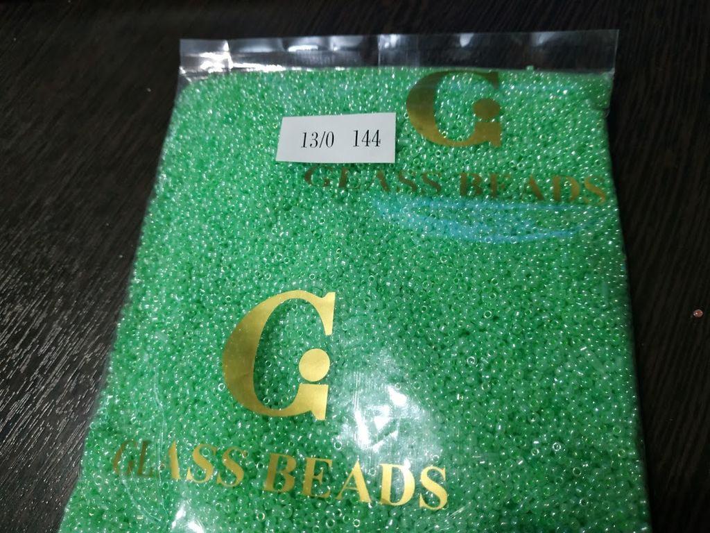 Производитель: Китай, цвет №144 мятный непрозрачный глянцевый, калиброванный, цена за 450 грамм (возможно отклонение на 10-20 гр), размер №13/0 - примерно 1,6 мм.