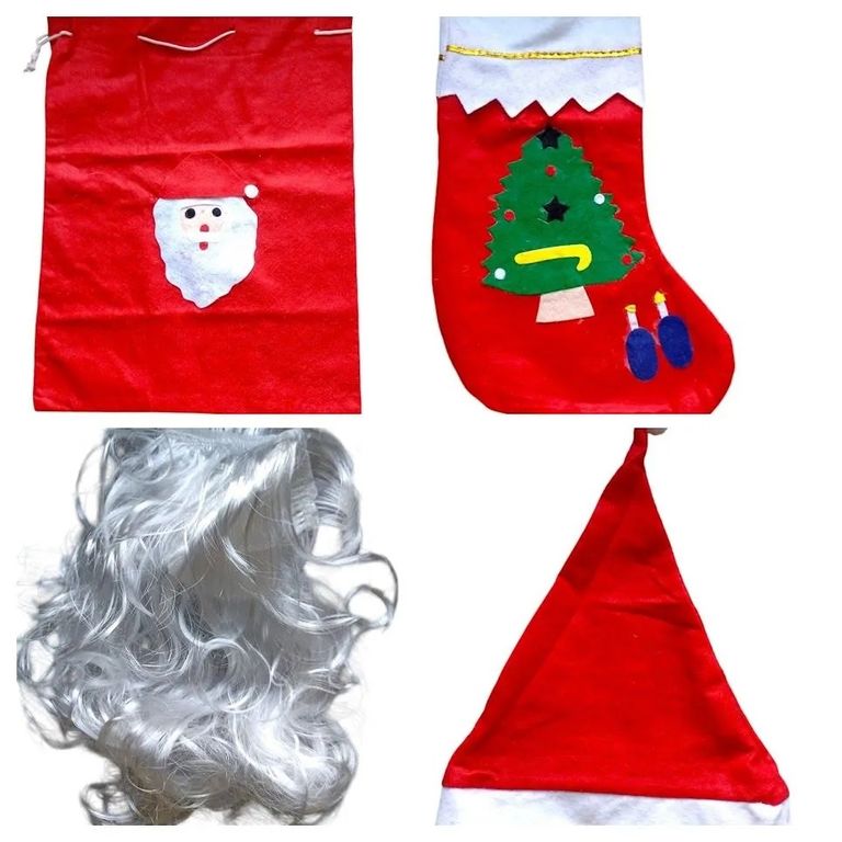 Набор для создания новогоднего образа Деда Мороза: борода, колпак, мешок, носок
