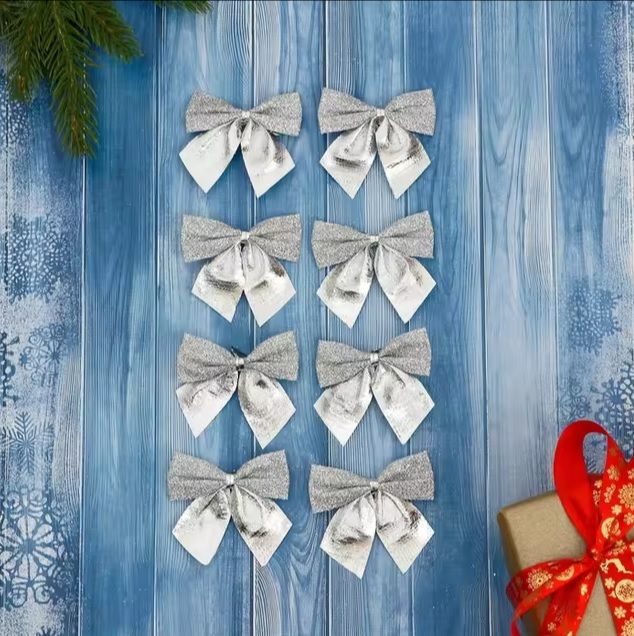 Украшение на елку "Бантики" - это великолепное дополнение к новогодним праздникам, которое придает запоминающийся и праздничный вид вашей елке. Эти прекрасные бантики – это идеальное сочетание элегантности и игривости, которое создаст особую атмосферу в вашем доме.Каждый бант выполнен с использованием самых высококачественных материалов, чтобы создать утонченный и продолжительный дизайн. Наша команда искусных ремесленников вручную создает каждый бант, придавая ему неповторимый облик. Изысканные ткани, блестящие украшения и нежные цвета делают эти украшения настоящим произведением искусства.