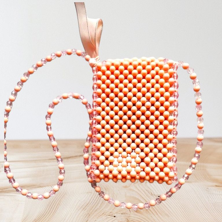 Сумка из бусин ручной работы нежного персикового цвета станет прекрасным дополнением к вашему образу на выпускной, свадьбу или для вечерних прогулок. Этот стильный и модный аксессуар — элегантная сумочка из красивых блестящих бусин — станет отличным дополнением к образу как девушки, так и женщины. Она идеально подойдёт для хранения мобильного телефона и всегда будет под рукой. Сумочка изготовлена вручную, что гарантирует её уникальность и высокое качество. Удобная ручка позволяет носить сумку на плече без дискомфорта. Это не только функциональный аксессуар, но и прекрасное украшение, подчёркивающее вашу индивидуальность и стиль.