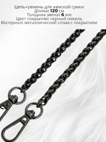 Цепочка для женской сумки, длина 120 см, толщина 6 мм, цвет черный никель