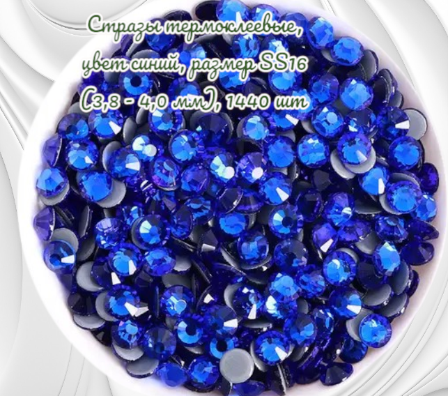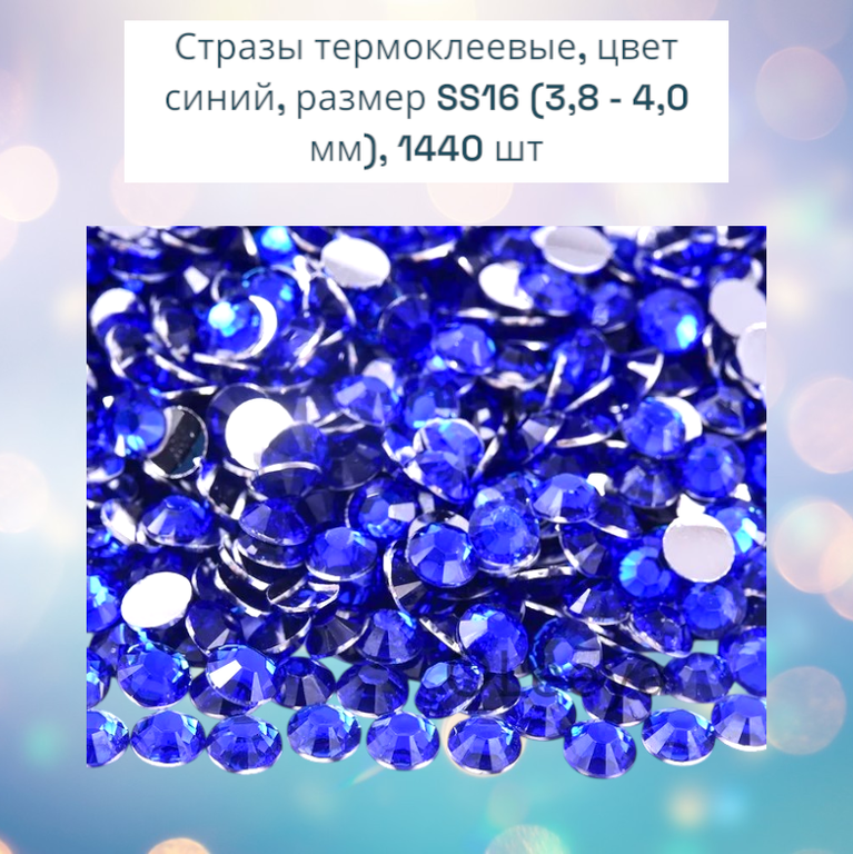 Стразы термоклеевые синие, SS16 (3,8–4,0 мм), 1440 шт