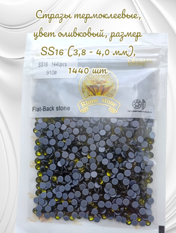 Термоклеевые стразы SS16 (3,8–4,0 мм), оливковые, 1440 шт — стильный блеск без лишних усилий!