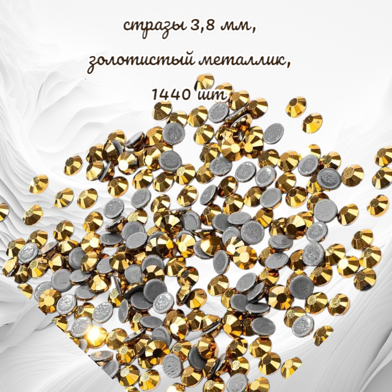 Стразы термоклеевые SS16 (3,8–4,0 мм), золотистый металлик, 1440 шт — блистай уверенно!
