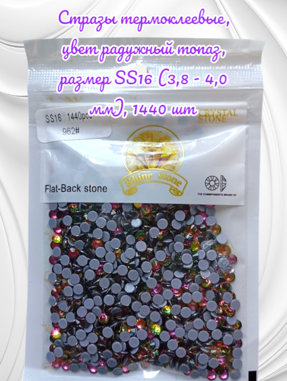 Термоклеевые стразы в цвете радужный топаз — это идеальное решение для тех, кто хочет добавить яркости, блеска и индивидуальности своим изделиям. Стразы имеют насыщенный янтарно-голубой оттенок, который напоминает прозрачные глубины драгоценного камня топаза. Они прекрасно переливаются на свету и создают эффект объёма и роскоши.