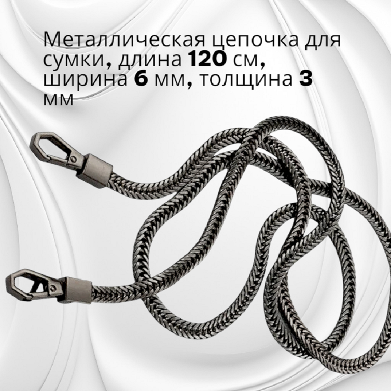 Прочная и стильная цепочка-ремень длиной 120 см за секунды преобразит любую сумку или клатч. Солидная ширина 6 мм гарантирует комфорт и надежность, а универсальная длина позволяет носить её на плече, через корпус или в руках. Подарите своей любимой вещи новую жизнь без лишних трат!