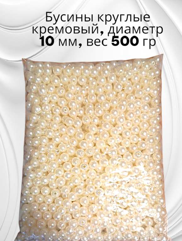Круглые бусины «Винтажный крем» — 10 мм, нежный кремовый оттенок. Фасовка 500 гр — выгодный запас для уютного творчества! Идеальны для теплой бижутерии и декора.