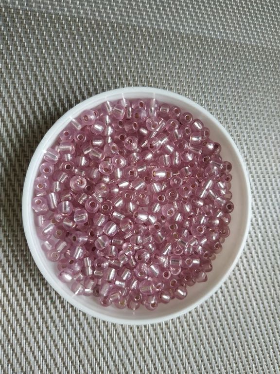 Производитель: Китай, цвет №1105 розовый с внутренним посеребрением, цена за 50 грамм (возможно отклонение на 1-2 гр), размер №6/0 - примерно 3,5 мм.