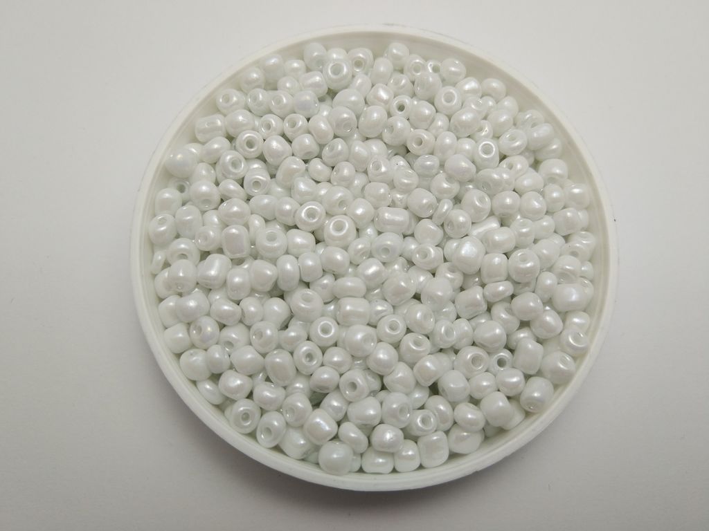 Производитель: Китай, цвет №121 белый непрозрачный блестящий, цена за 50 грамм (возможно отклонение на 1-2 гр), размер №6/0 - примерно 3,5 мм.