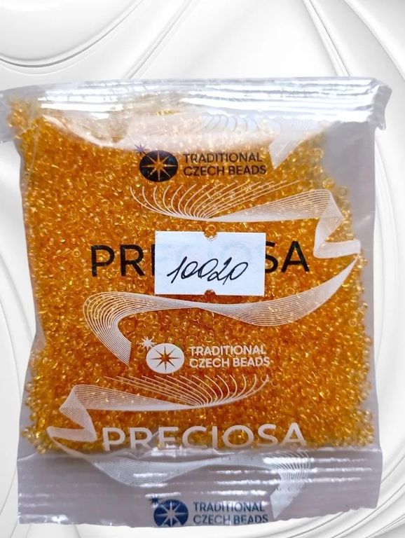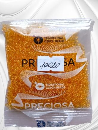 Размер 10/0, цвет светло-желтый (10020), продается фасовкой по 50 грамм. Производитель: Прециоза, Чехия.