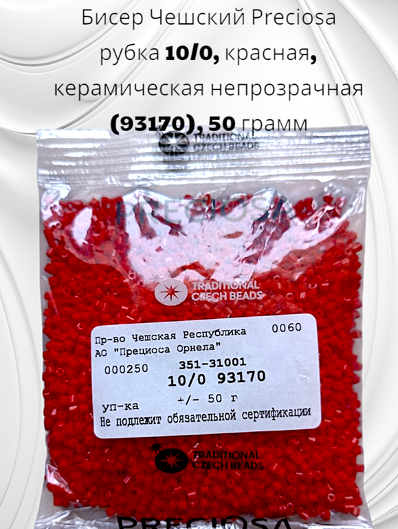 Бисер чешский preciosa рубка 10/0, красная, керамическая непрозрачная (93170), 50 грамм