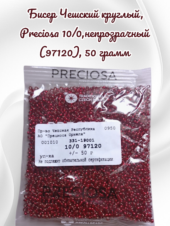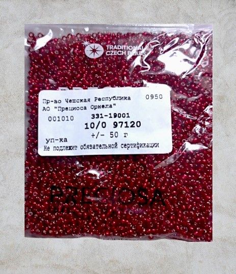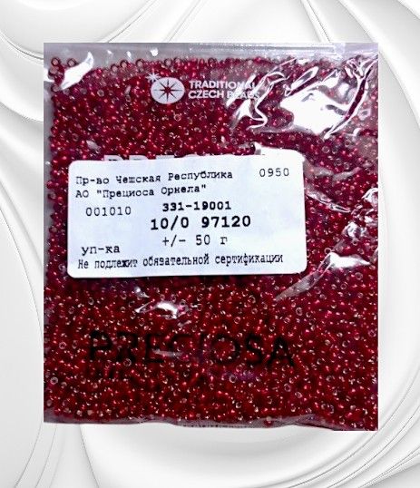 Размер 10/0, цвет темно-гранатовый (97120), продается фасовкой по 50 грамм. Производитель: Прециоза, Чехия.