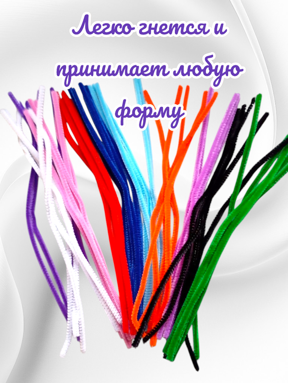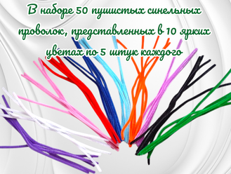 Пушистая синельная проволока длиной 30 см и диаметром 6 мм идеально подходит для детского творчества и рукоделия. В наборе 50 штук проволоки пяти различных цветов, что позволяет создавать разнообразные поделки.
